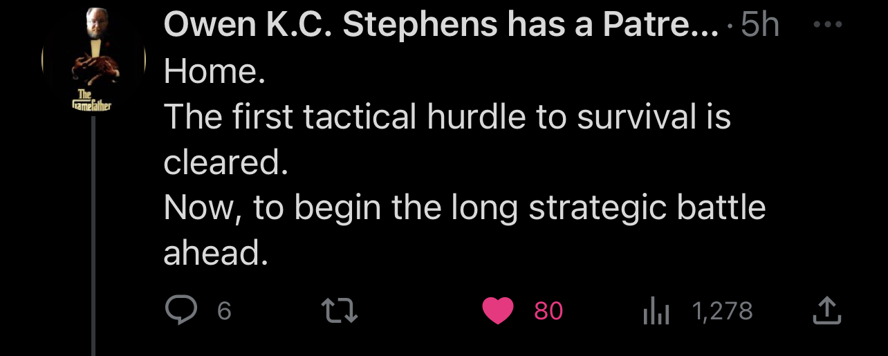 Post in thread 'Owen K. C. Stephens hospitalized'