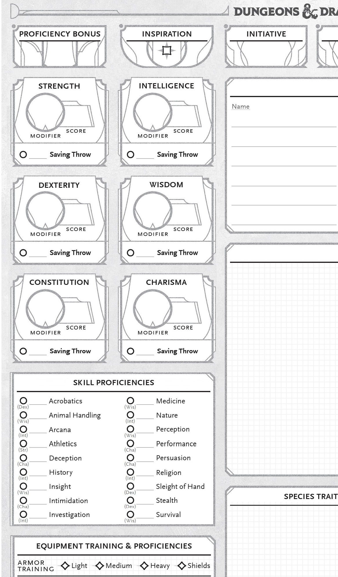 This marks the first time since 2014 that D&D has updated its official character sheets, with print copies eventually going on sale in a couple of weeks. Also to come are several campaign tracker sheets that will be available as part of the to-be-released Dungeon Master's Guide.