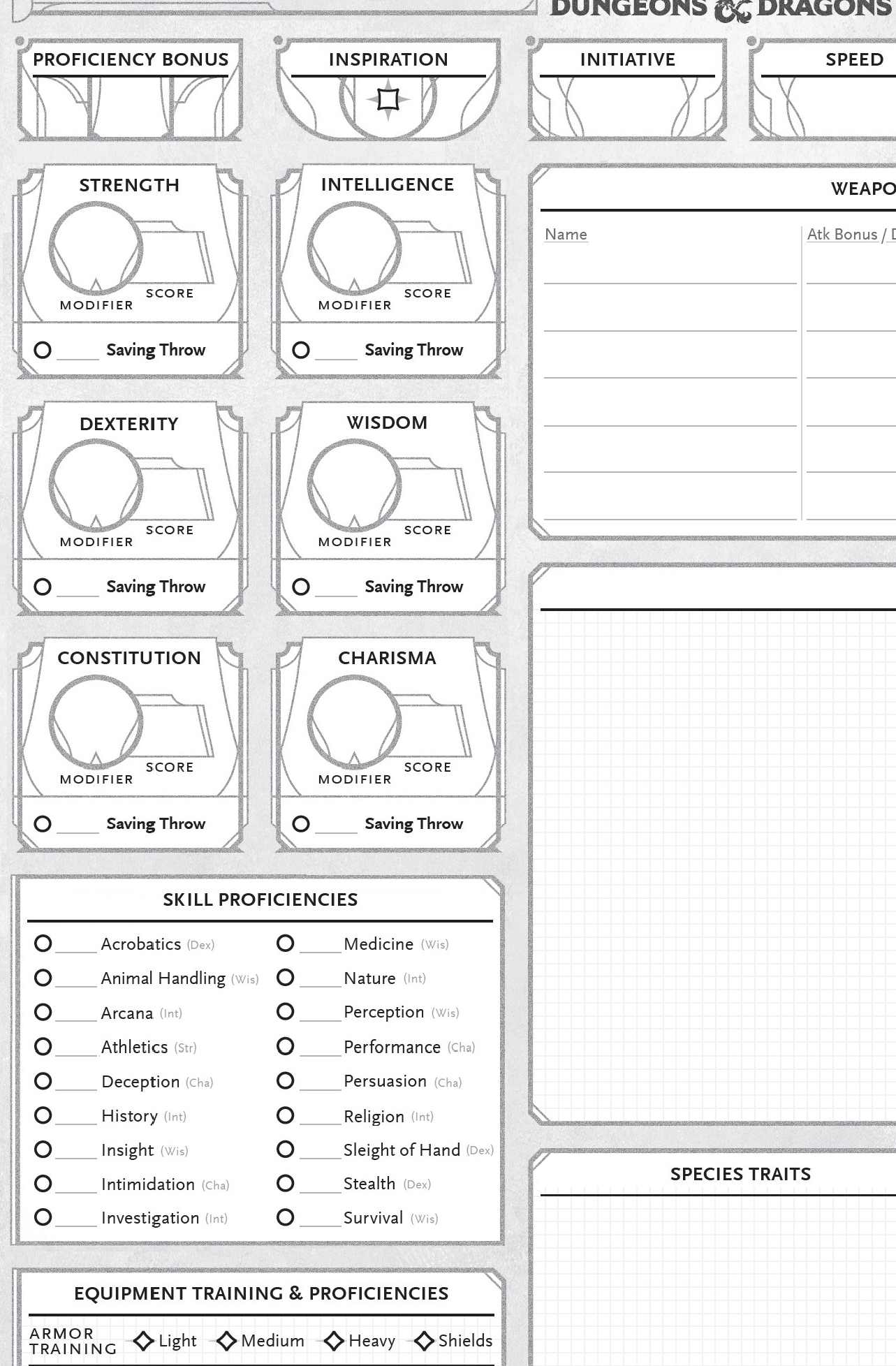 This marks the first time since 2014 that D&D has updated its official character sheets, with print copies eventually going on sale in a couple of weeks. Also to come are several campaign tracker sheets that will be available as part of the to-be-released Dungeon Master's Guide.