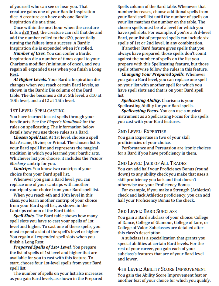 Still sad about Song of Rest as I liked the healing built on short rests, and would have liked it to be Restful Performance or something and not rely on magical music for the dancers and other artists. Does anyone know if Bardic Inspiration gets to be used to perform healing still as it did in the UA? I liked having some forms of healing without spending spells known on healing spells.