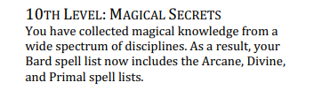 Yes. But does the bard have exclusive spells? If not, they can save the space and not do a list for level 6+ at all. Because they have way more spells to chose from anyway.That was from when they were experimenting with unified spell lists and the bard chose one (Arcane, Divine, or Primal) to start with.