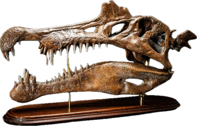 I think there is something similar, with the way their long, skinny snout flares/rounds out at the tip. I could see some possible vague spinosaurus inspiration here.I always thought the green could draw inspiration from Spinosaurus.