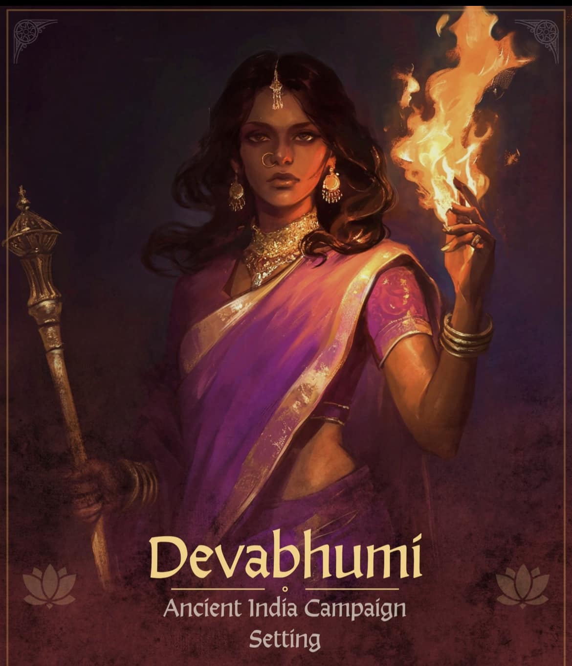 Devabhumi is a high fantasy TTRPG setting inspired by the history and epics of Ancient India. This setting features: