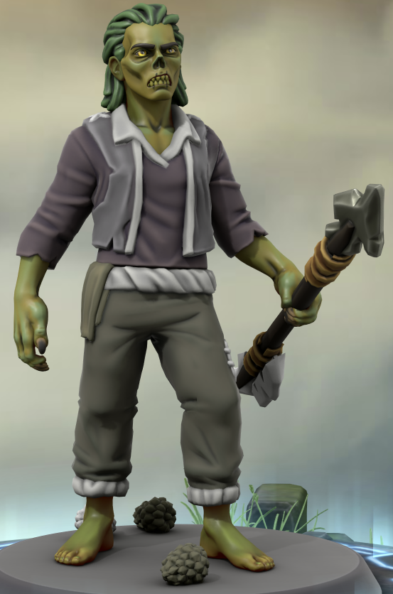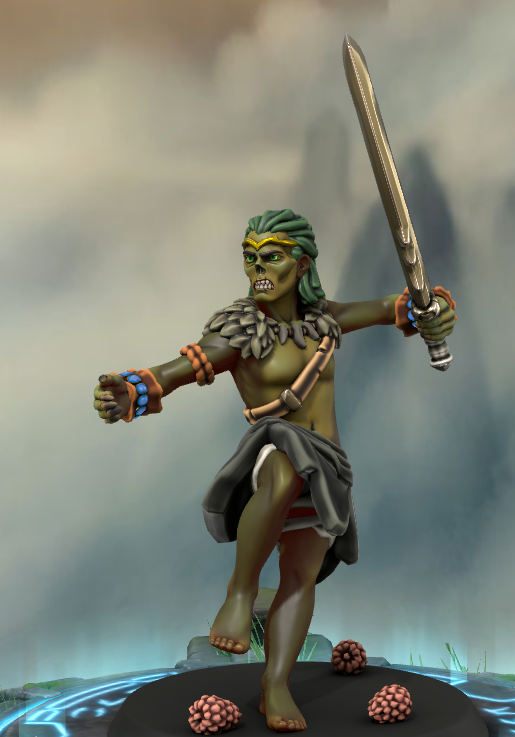 As for a Thrall Pic, it now only has a Slam attack and is basically a Zombie, so remove the weapon and have it dressed in scraps & remnants of cloth. Maybe tweak the colour so it's more "rotten zombie" and less "green man". If you can have a few exposed bones it'd help too. The Fircarl could have some of that discolouration and maybe an exposed bone, since it's an intermediate stage.