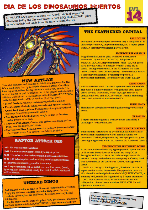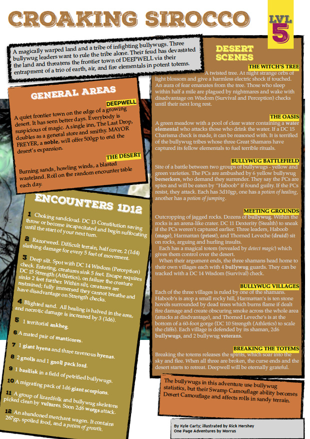 I am just 7 patrons away from releasing my next One Page Adventure! If you like these, things, please become a patron for as little as a dollar. There are four One Page Adventures available so far, and I can't wait to release the next, THE HAUNTING OF CALROW RUINS. These are for D&D 5E, one single side of paper, designed for a single session of play. A real exercise in concise writing!