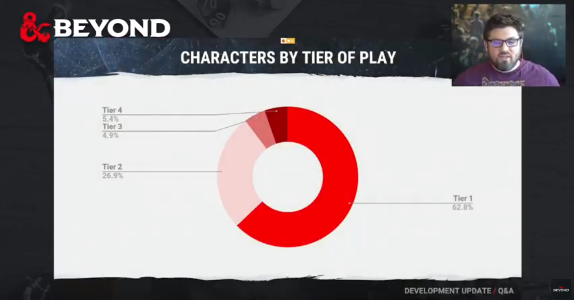 D&D Beyond has released some more data mined from usage of its platform. A couple of weeks ago, it published some stats on the most viewed D&D adventures, from Dragon Heist and Strahd all the way down to Rise of Tiamat. This time, it's a look at player characters by tier of play.