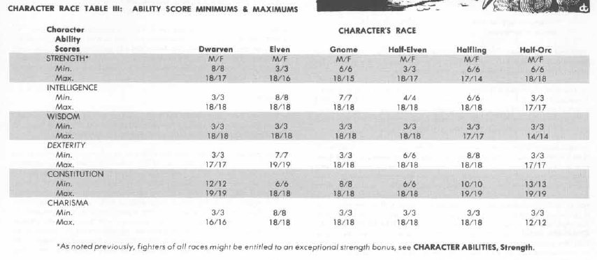 Note, other than elven Dex or dwarven Con, nothing could be better than a human. Note that Halflings got a max of 19 Con but didn't actually get a bonus to the stat. :erm: