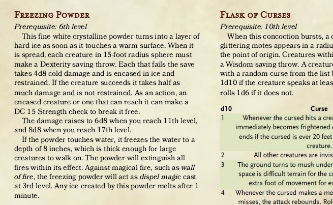 5. If, however, you feel that harvesting and tracking reagent inventory is a key part of the “crafter class” experience, I added optional rules for extracting ingredients, and recipes for the items.