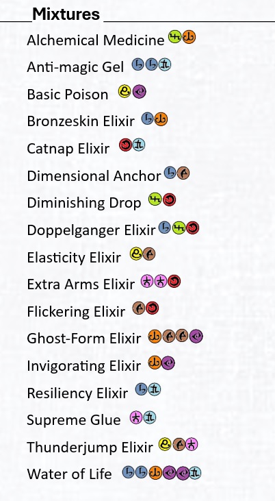 4. Many homebrew alchemists focus on harvesting and tracking ingredients or reagents. I feel this can go bad in many ways. Usually, they devolve into spending your hard earned gold pieces to be able to play your class. If not, you often have to take every opportunity to go looking or make “gathering” skill checks, and then make the best potion you can from the ingredients available. My version is balanced by both limited formulas known and limited uses per day. This means you can always make the item you want to.