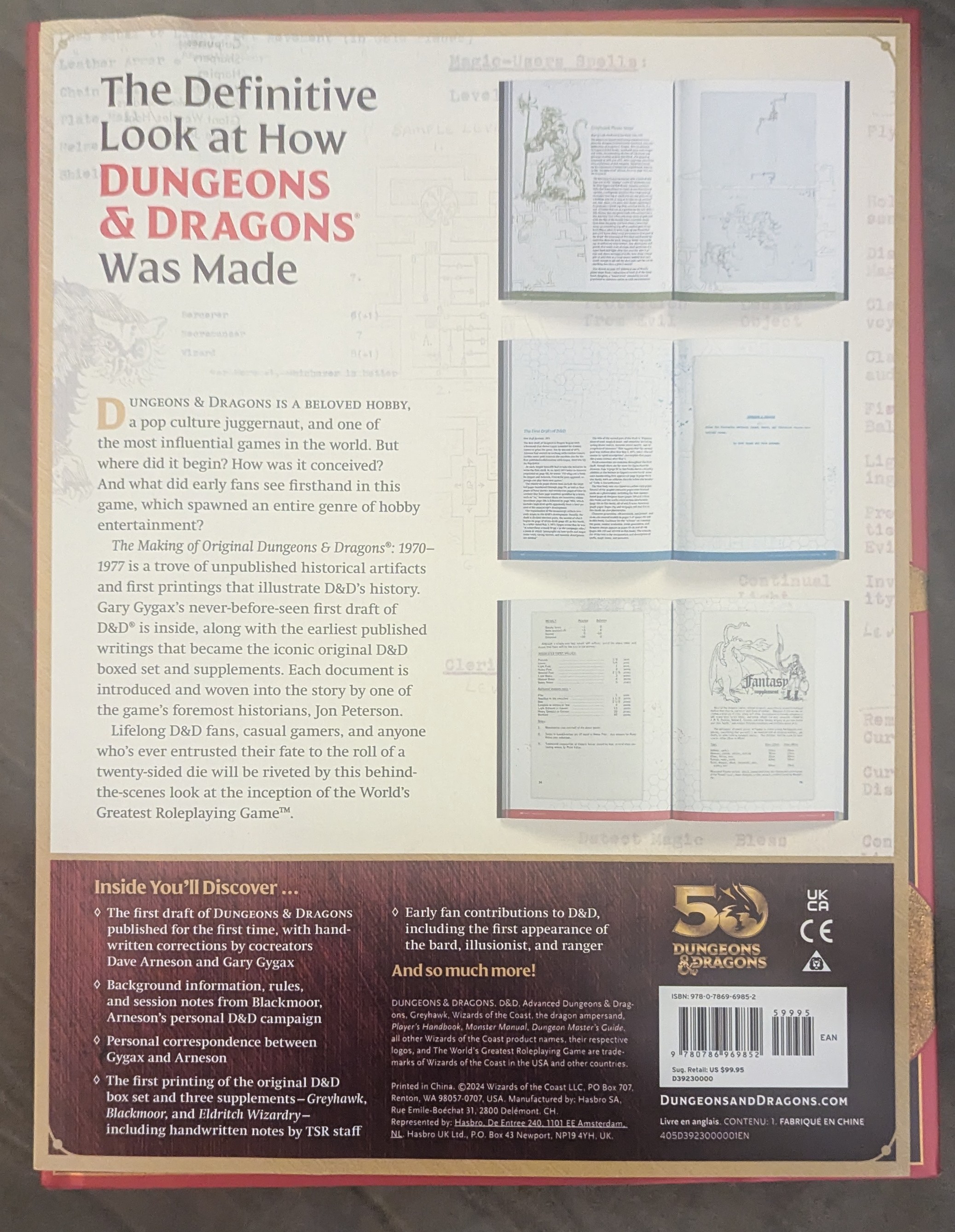 “There are a lot of books that tell people how D&D was made, but [what] we wanted to do with this was show it to you instead,” said senior game designer Jason Tondro. “So what this book does is... it includes everything from before D&D existed. Games were being made that influenced D&D, and then the first draft of D&D that Gary Gygax typed out in Lake Geneva, then the first printing of the Brown Box, the first version of D&D that ever hit the world.”