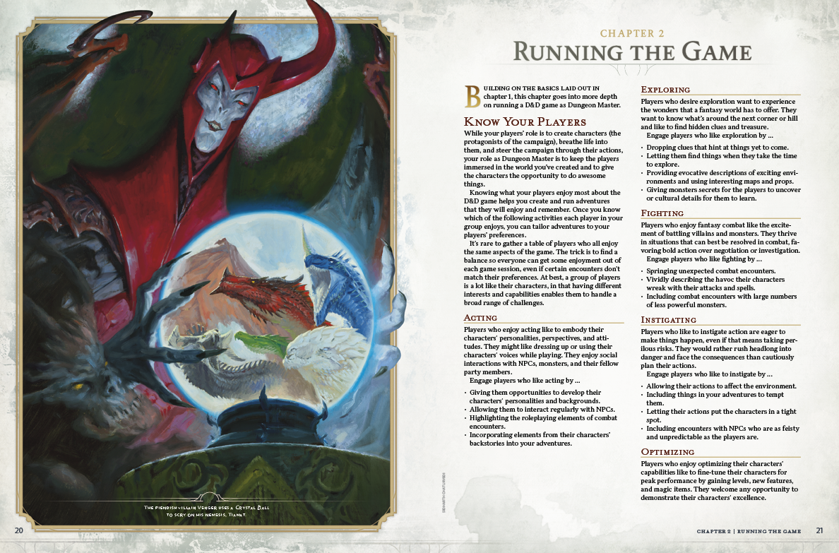 The 2024 DMG is front loaded with all of the basic material DMs need to get their campaigns off the ground and make the game as fun as possible before moving into the “nitty gritty” of how to run a game. As such, the first chapter includes:- What Does a DM Do?
