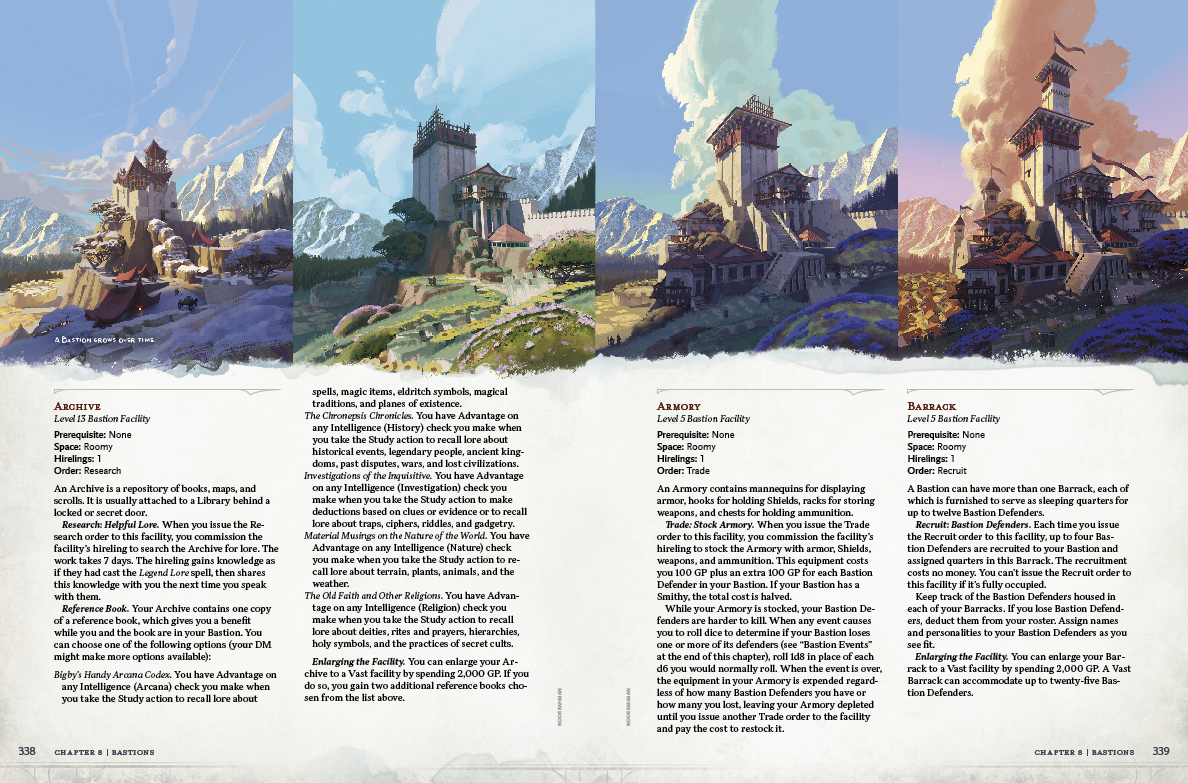So the player controls the bastion, which has more options than the older option of strongholds. At level 5, a bastion is a home base. It doesn't have to be a castle. It can be an attic, a structure, etc. Bastions can also be cool facilities such as a pub, guild hall, theater, observatory, etc.