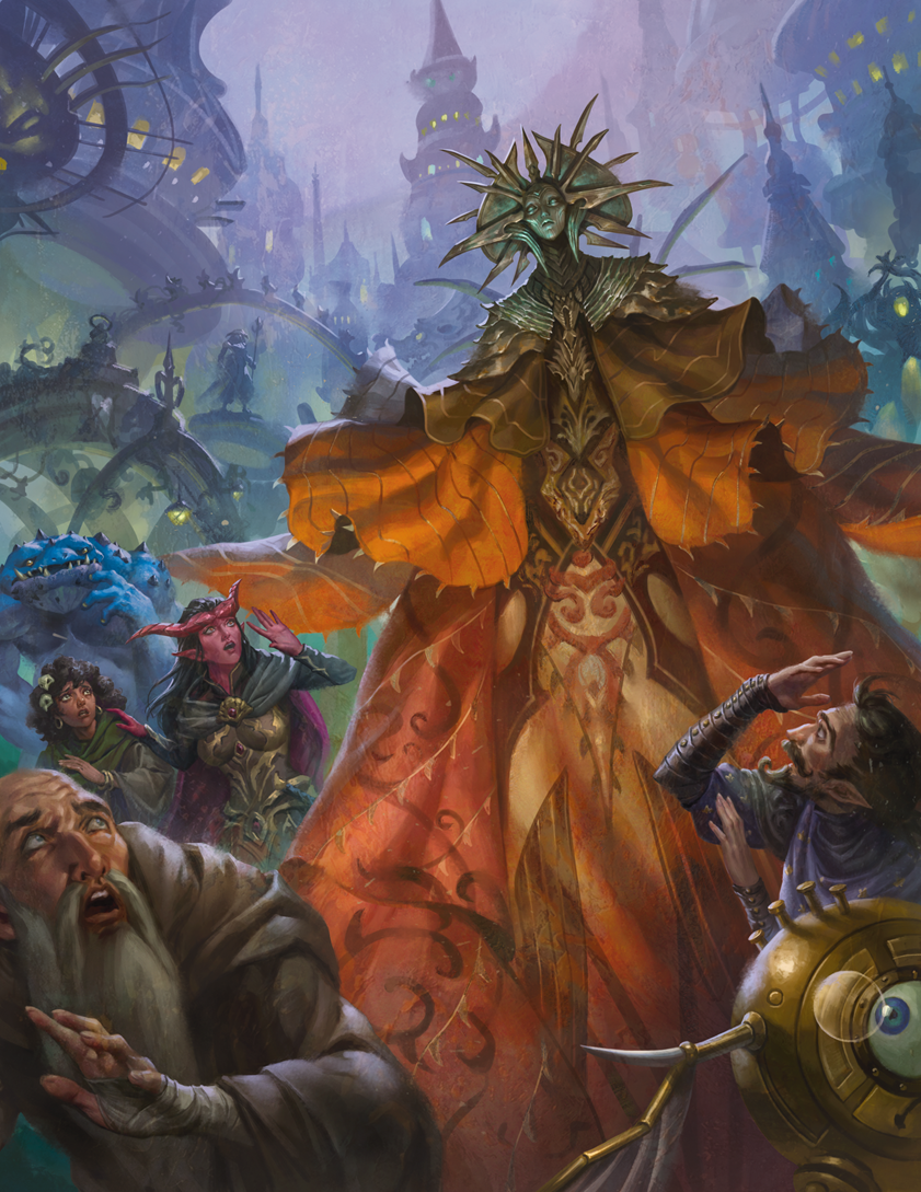 Venger from the 1980s Dungeons & Dragons cartoon is featured on the traditional cover. It felt right to the team since he never had been before, and it's another wink to D&D's past.The alternative cover is in shades of gold – appropriate for the golden anniversary of the game, and features Loloth. It's a reference to the correlation between the webs DMs weave with players to create stories, and the webs Loloth weaves to snare players.