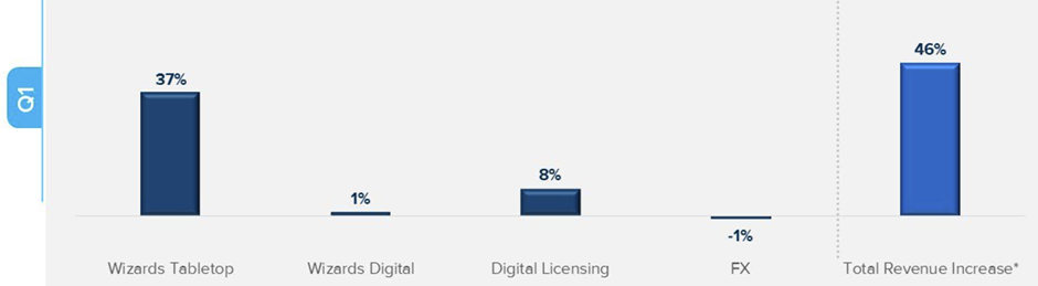 - Revenue increased 46% behind strong growth in MAGIC: THE GATHERING, ongoing momentum in digital and licensed gaming and DUNGEONS & DRAGONS.