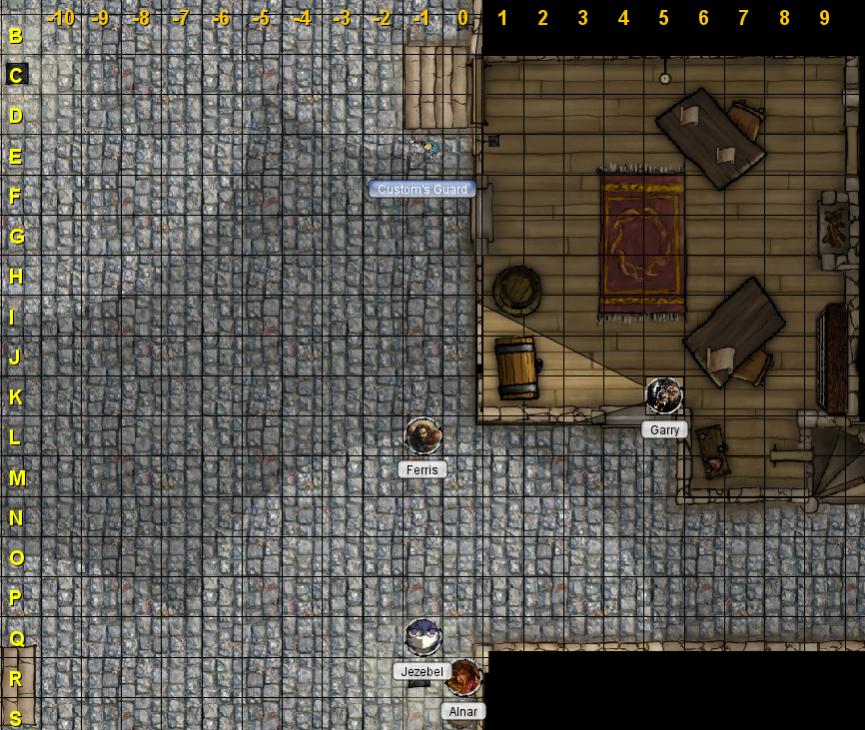 With that the guard strolls back to his post at the Customs Office door, having seemingly forgotten about any noises from within. Ferris gets the distinct impression that he may not be one of Daunton's brightest lads.