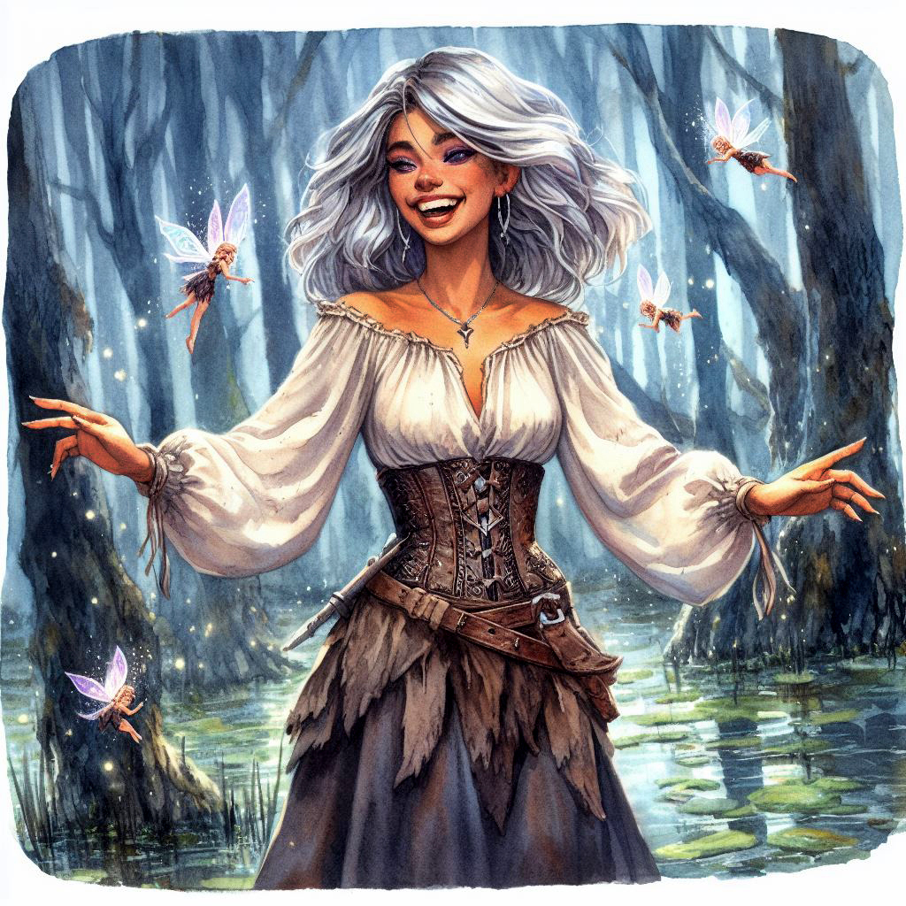 My middle child is the first to complete her PC, a kalashtar aberrant mind sorcerer with the Feylost background. Her fairy friends gave her the name Moonflower, which is the name she prefers. She is still only 22, but time passed more swiftly back on Eberron, so most of her friends and family have gone.
