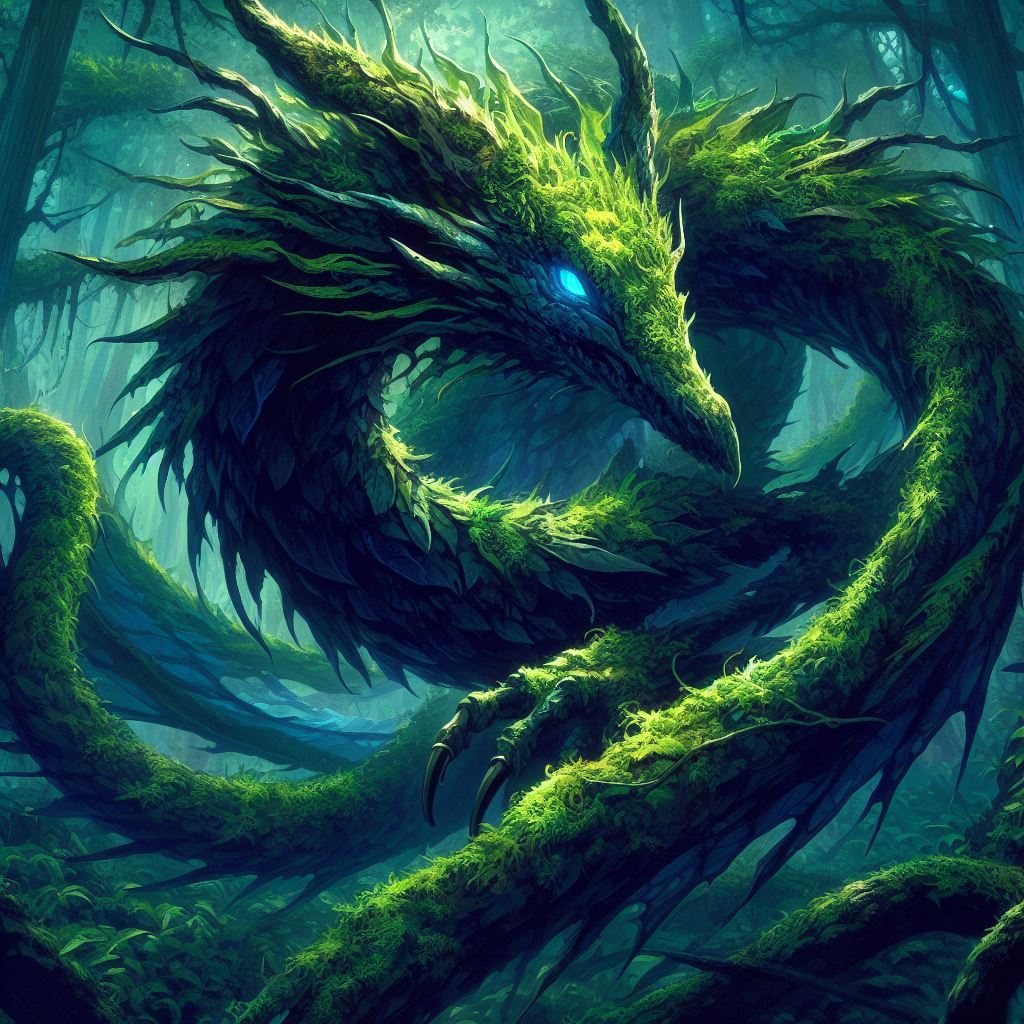 The forest dragon was hard because I either wanted something that looked like serpent that could snake through the forest at terrifying speed and bat like winged forelegs and normal clawed hind legs (I tried using wyvern and it didn’t help so I guess bing knows that dragons can come in all leg configurations) and I had to give up on the wings. Every time I got them in it still had forelegs as well, and wasn’t like stalking toward or slyly watching the viewer, but rearing back or doing some other thing that didn’t fit the vibe.
