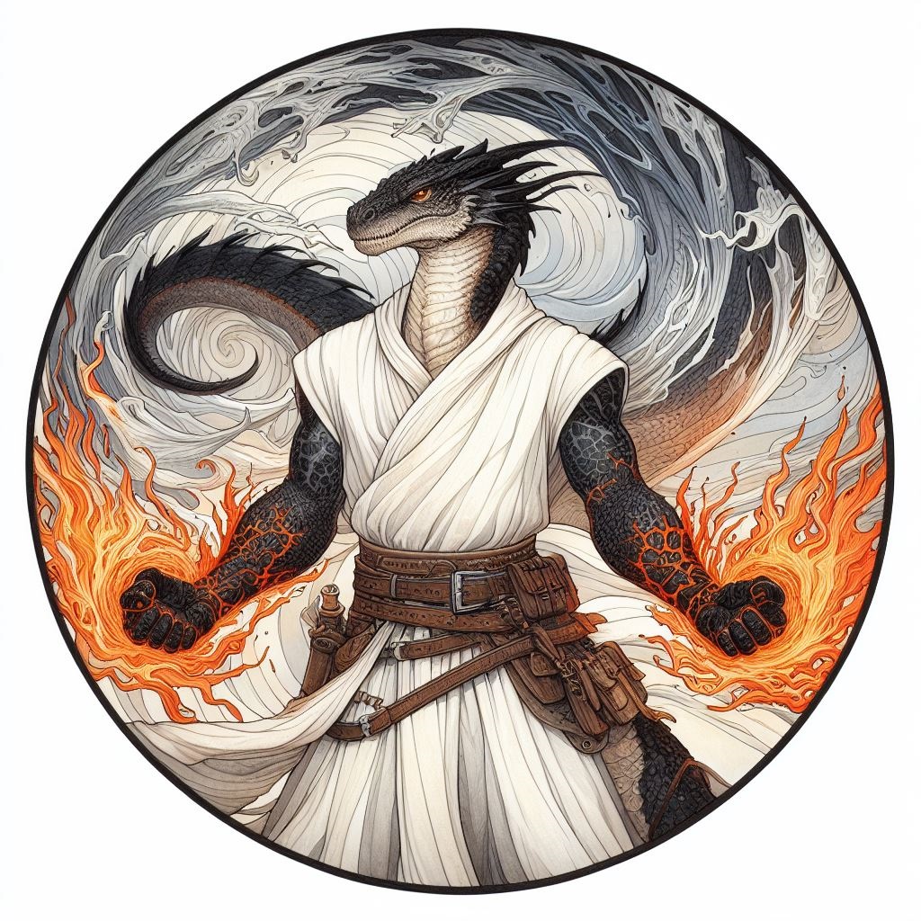 - Detail Proportions and Size: Describe the size of the visible part of the object and how it should proportionally correspond to the obscured part. For example, "a large broadsword with two-thirds of its length visible in front of the subject and the remaining third extending behind, proportionally consistent."