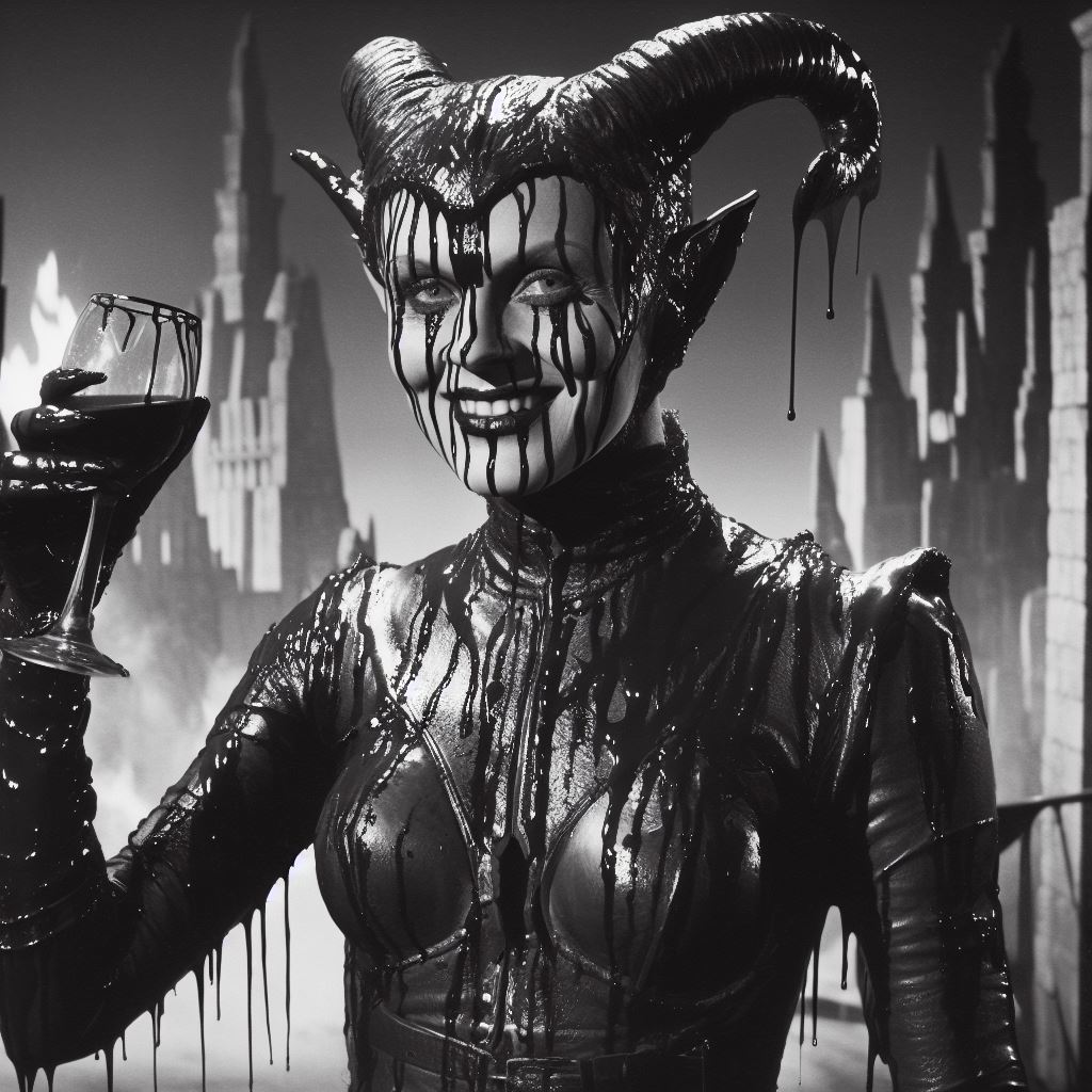 On the second attempt, D3 failed heavily to provide me with a good start. This time, it was an Eberron artificer heiress who was gifted a black horse (a nightmare) and at some point wanted to be "anywhere else" and the nightmare obliged by planeshifting to Mabar. Where she suddenly wanted to be near the handsome hero who saved her last time... planeshifting back to a Xen'drick ruin. She looked obviously terrified. That's a lot of details to put into a picture and D3 dropped the ball (I'd have expected it to follow the prompt better). So I worked from SDXL (rundiffusion model) for this one.