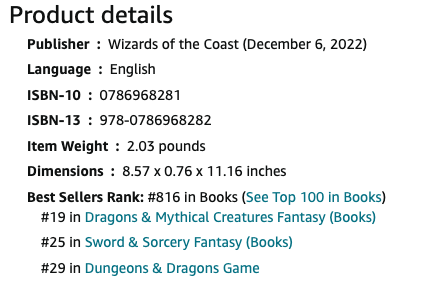 D&D 5E (2014) Amazon US book sales rank.