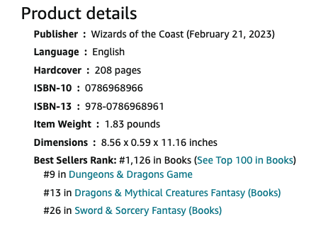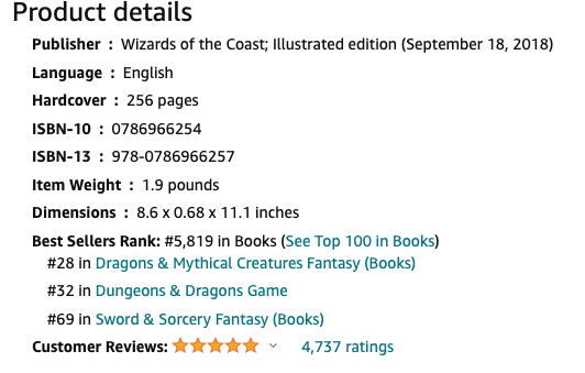 D&D 5E (2014) Amazon US book sales rank.