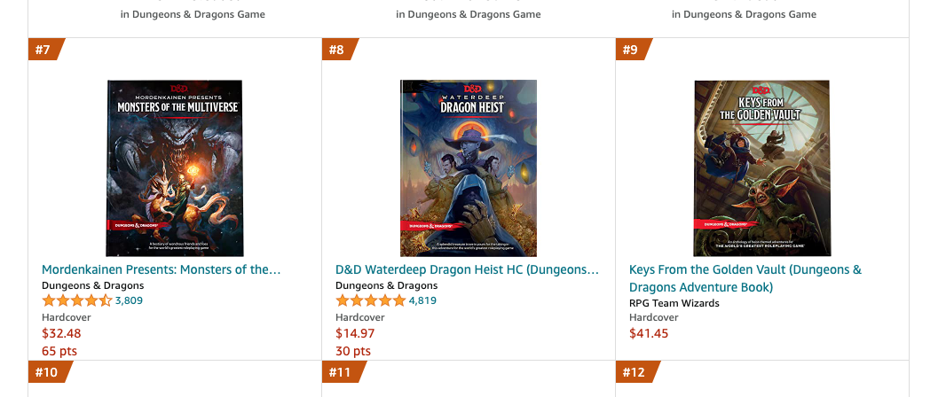 Everything at WOTC is about DDB. They think that it’s all about that VTT and they are the future of gaming. Hate to break it to them but just like how action figures are starting to slow in sales, home games are becoming the norm and by the time that VTT launches they’re subscriber base isn’t going to be using their VTT at the expected levels. All their OGL redlines indicated they were working purely from DDB numbers so looking at Amazon number for what WOTC think is successful is fruitless. They just see everything as 25% sales levels and frown.