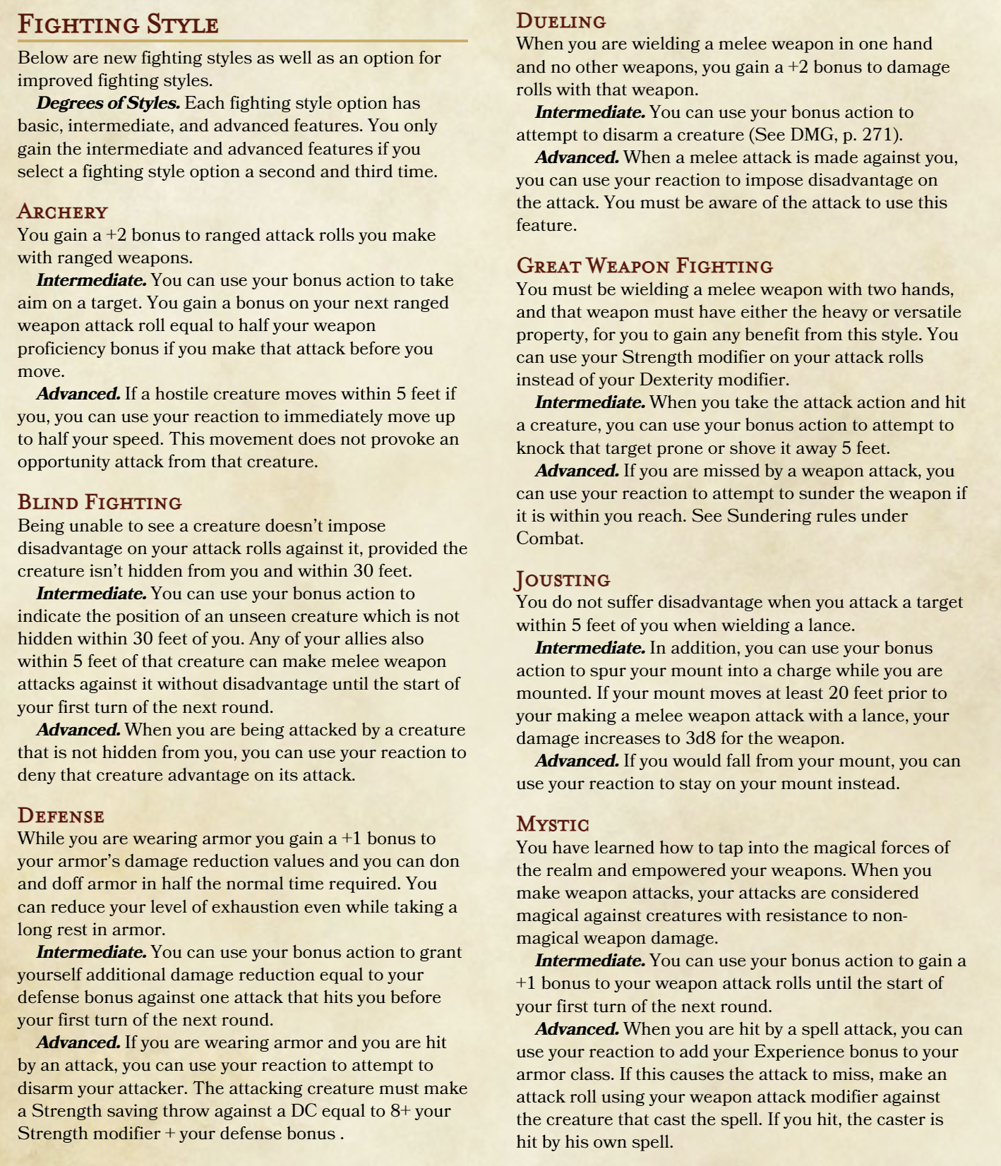 Instead of learning a new fighting style, you can improve one you already know. Some of the benefits won't translate exactly since they use other rules from the mod.