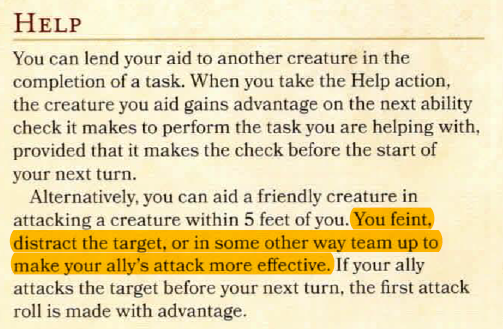 Actually, the only time I see this as a good thing is if someone has a big attack bonus and the other doesn't. At lower levels, my helping the raging barbarian will give them advantage, offsetting the -5 penalty for their +10 damage via GWM. I'm not likely to hit for much, if I hit, so I am better off helping them.Which is the reason that the whole help action doesn't really make much sense. What is a thing thing that anyone can always do, without a fail, that is more distracting than whacking someone with an axe, but still is not an any kind of an attack?