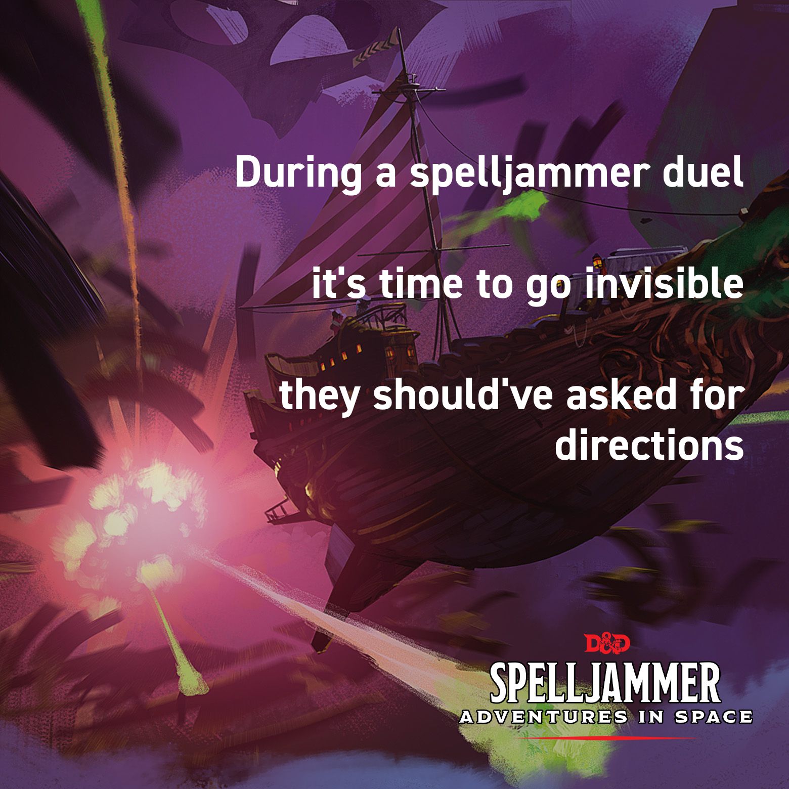 C. 1. They should have asked for directions. 2. Realmspace/Wildspace tomato/tomahto. 3. I wanna be a vampirate when I grow up. 4. You need air? Pfft. Amateur. 5. Orrery is hard to say. 6. Stale air smells like dead gaj*. 7. Who here speaks "ooze"? 8. Maybe your parents were right. 9. Many space dragons, few space dungeons. 10. The circle of life might end here. 11.