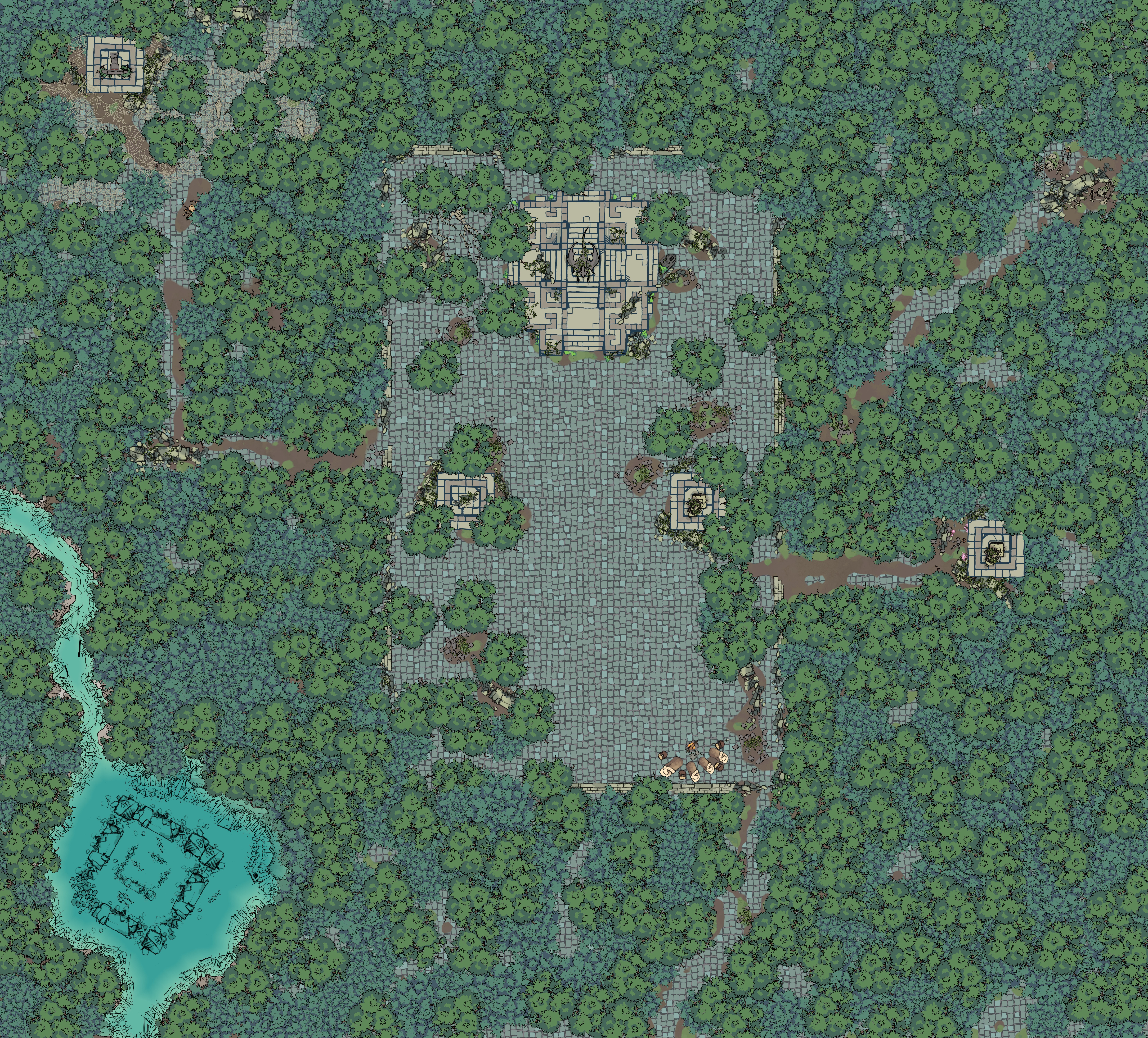 Tokens on the map were made with our own VTT token generator. Map in the background was made using Dungeondraft, Made with assets from 2-Minute Tabletop