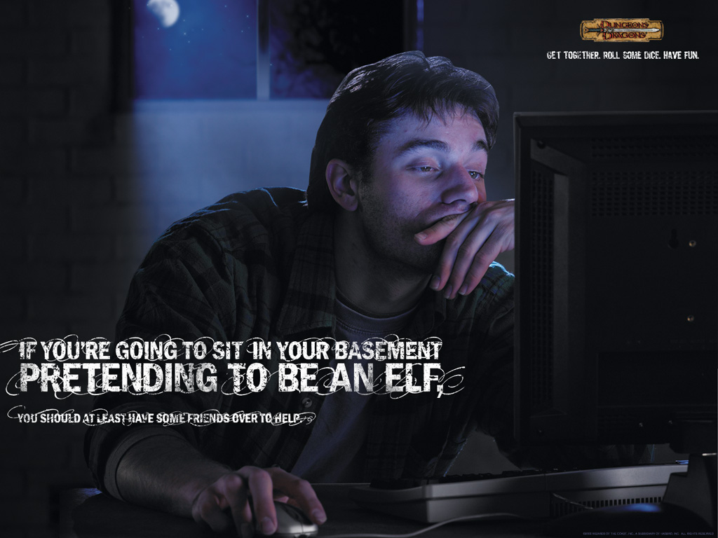 They even made a commercial telling people to play elves in D&D! Anyone know where to find it? Anyway, the perception had to be there for that commercial.Snarf got it right. The takeaway of that point (as I recall Riggs presenting it) was that the lead-in to Fourth Edition was marked by the Hasbro executives looking at a game that had all the trappings of D&D becoming a global phenomenon with players in the tens of millions, forking over subscription money every month, and they wondered why D&D wasn't doing that. This (along with, if I recall correctly, the idea that WoW was siphoning D&D players, and that was why the 3.5 PHB sales were trailing off) became the impetus for 4E's creation.