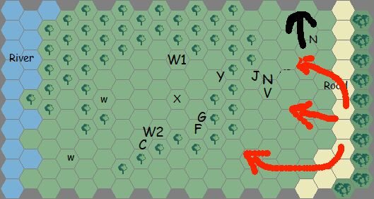 OOC: Ive placed you all on the map based on your descriptions for reference and relative distances. Colm, Yondo, and Fatcoin are in the trees as is the goblin and the non talking worg. All gain a quarter cover as a result.