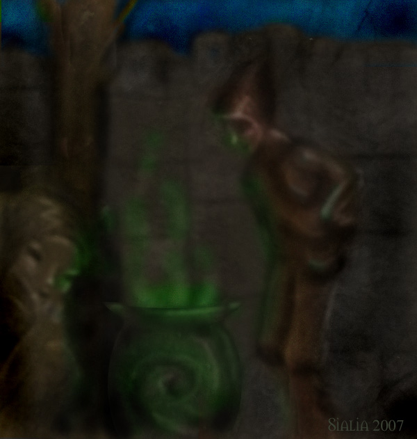 A month earlier, Esmeralda sat in a chair as the alchemist peered into his cauldron. Green smoke bellowed forth, creeping into the corners of the chamber and curling around her feet.