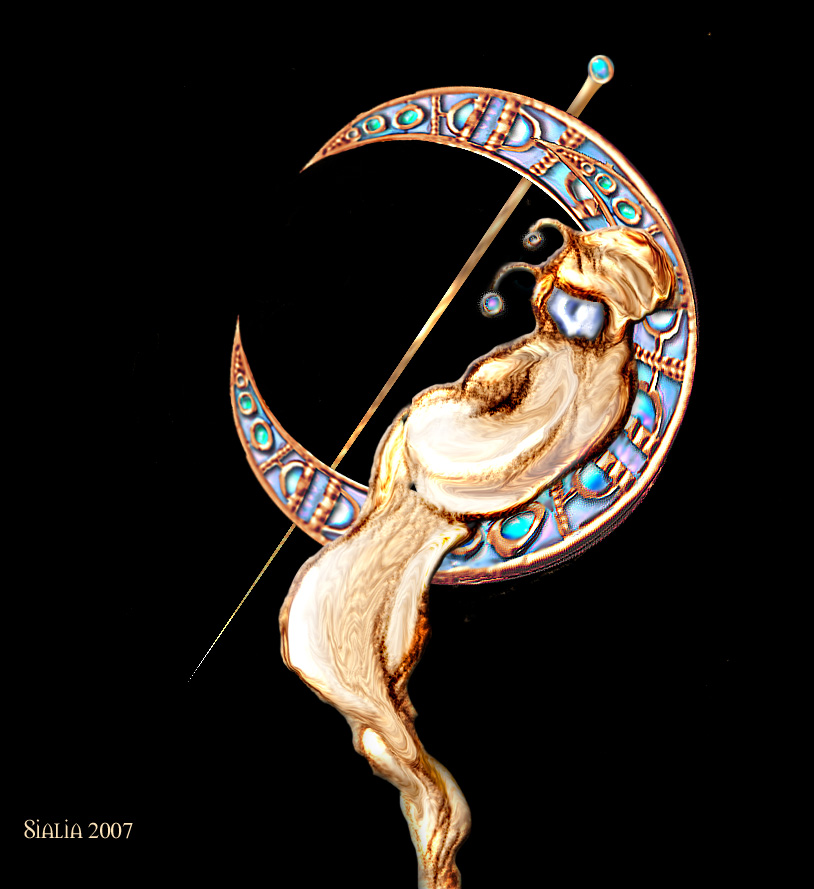 Luna curled up on the crescent moon.