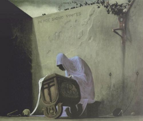 The specter turned its head slightly, and Esmeralda notices a phrase carved into the wall behind it: “In hoc signo vinces.” She mouthed the words as she read them, “With this sign, be victorious.”