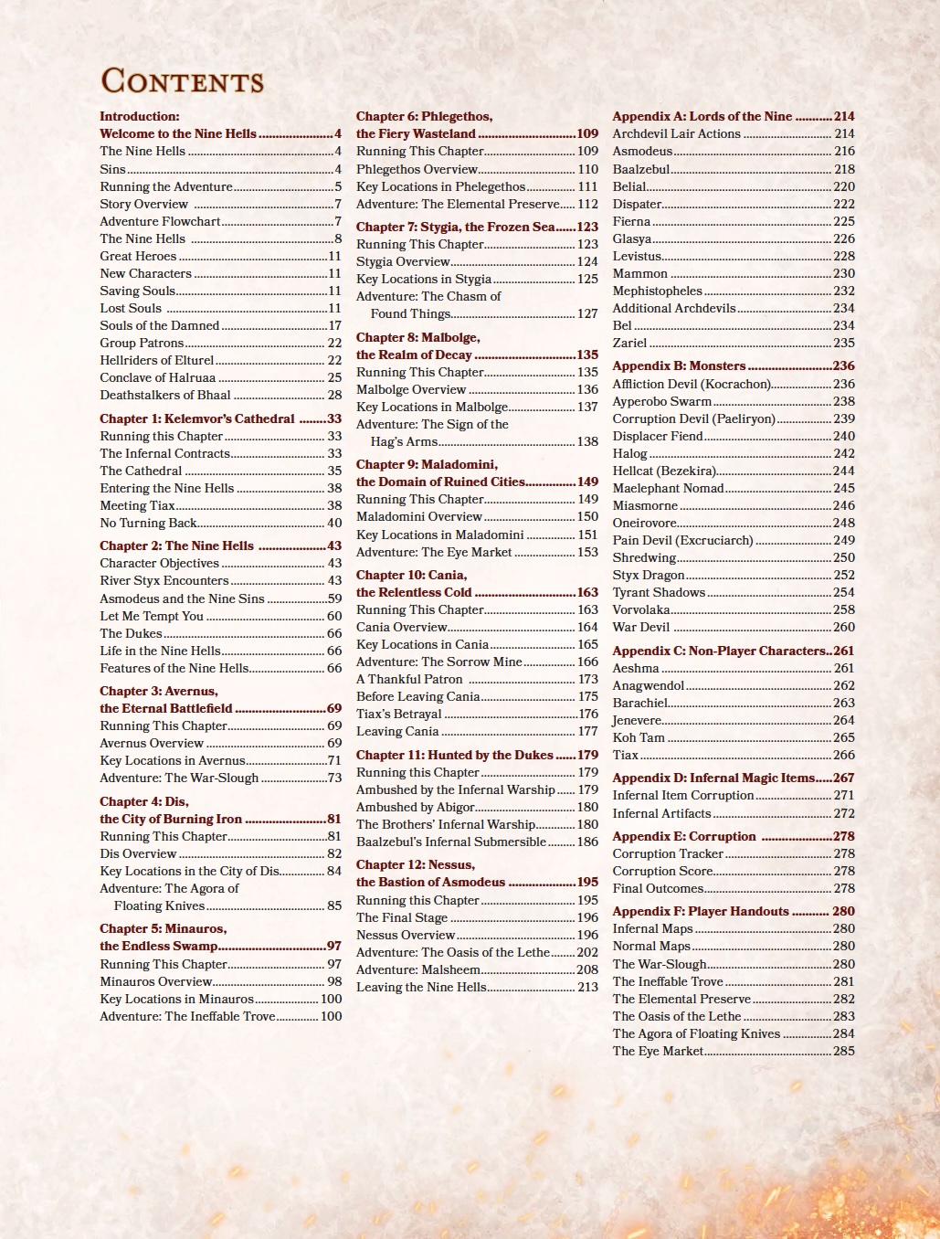 Adventure for levels 11-20, stat blocks for Asmodeus and the Lords of the Nine, and a Nine Hells sourcebook!