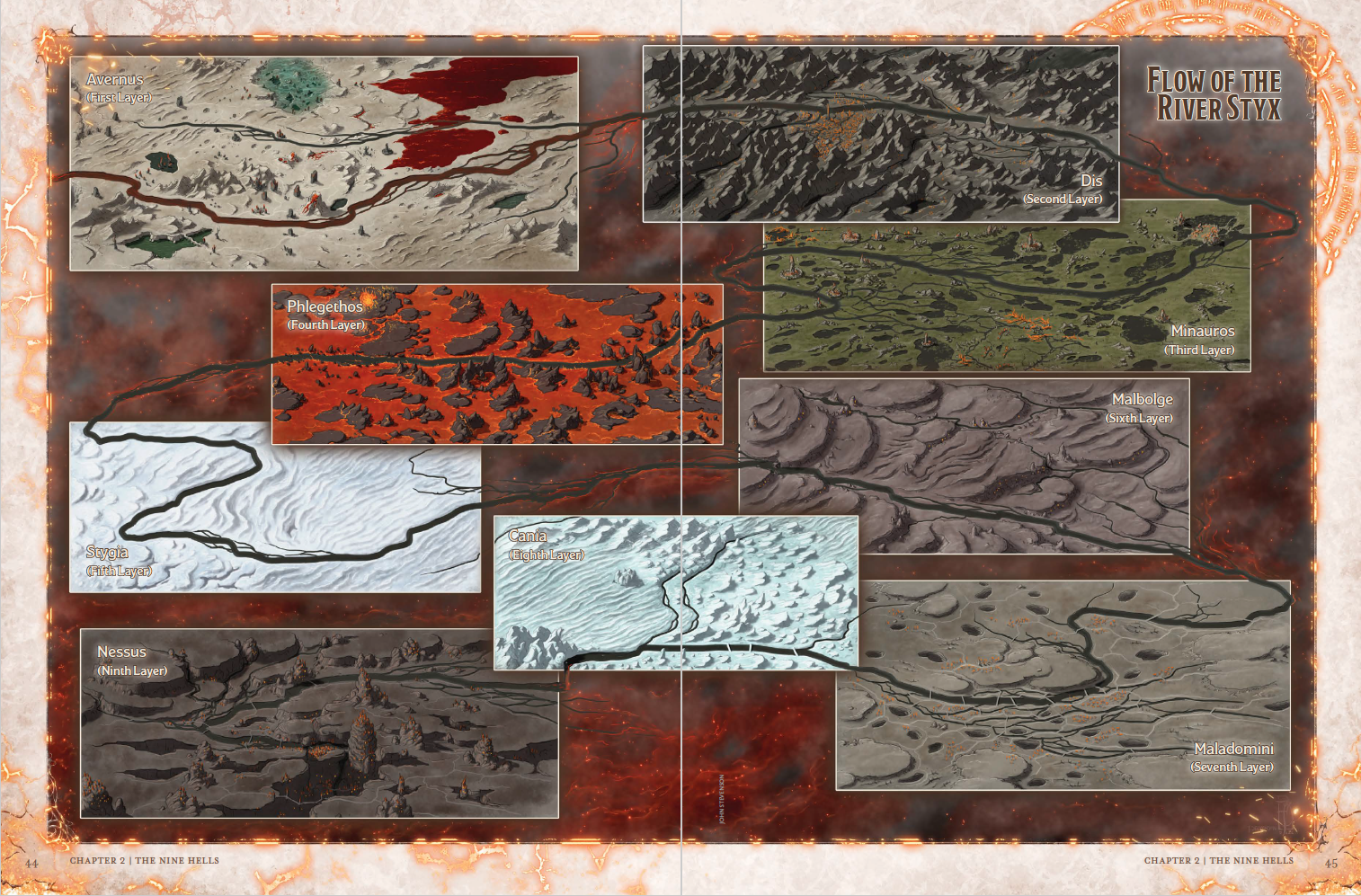 • Details on all Layers of the Nine Hells, with Beautifully Illustrated Maps created by John Stevenson