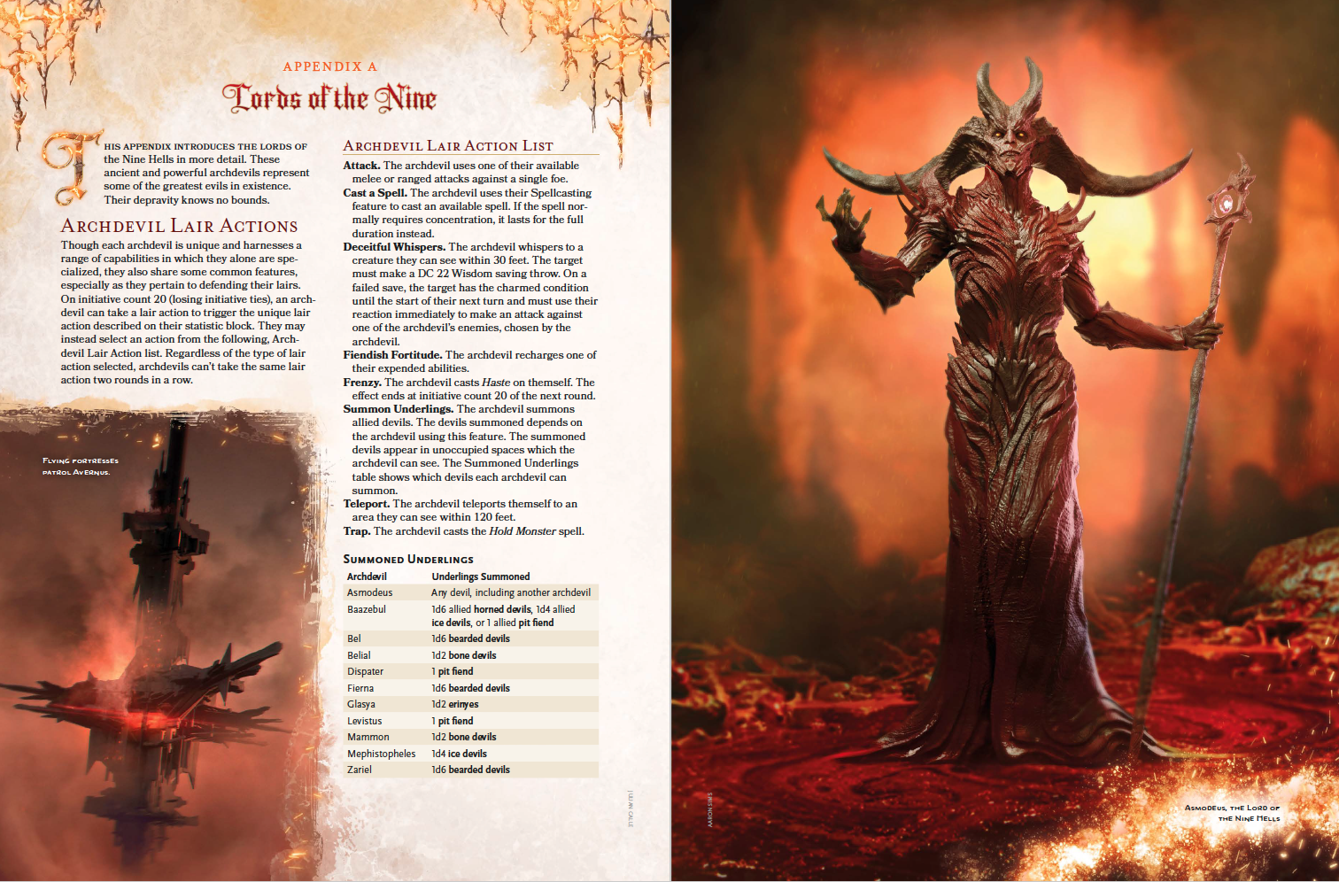 • Stat Blocks for Asmodeus, Lord of the Nine, and all major Archdevils
