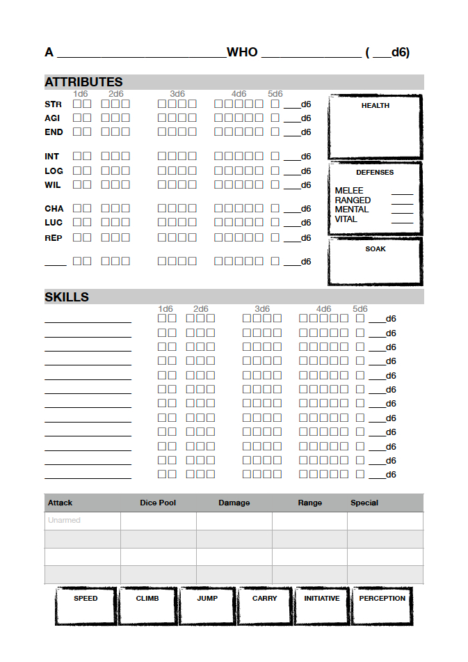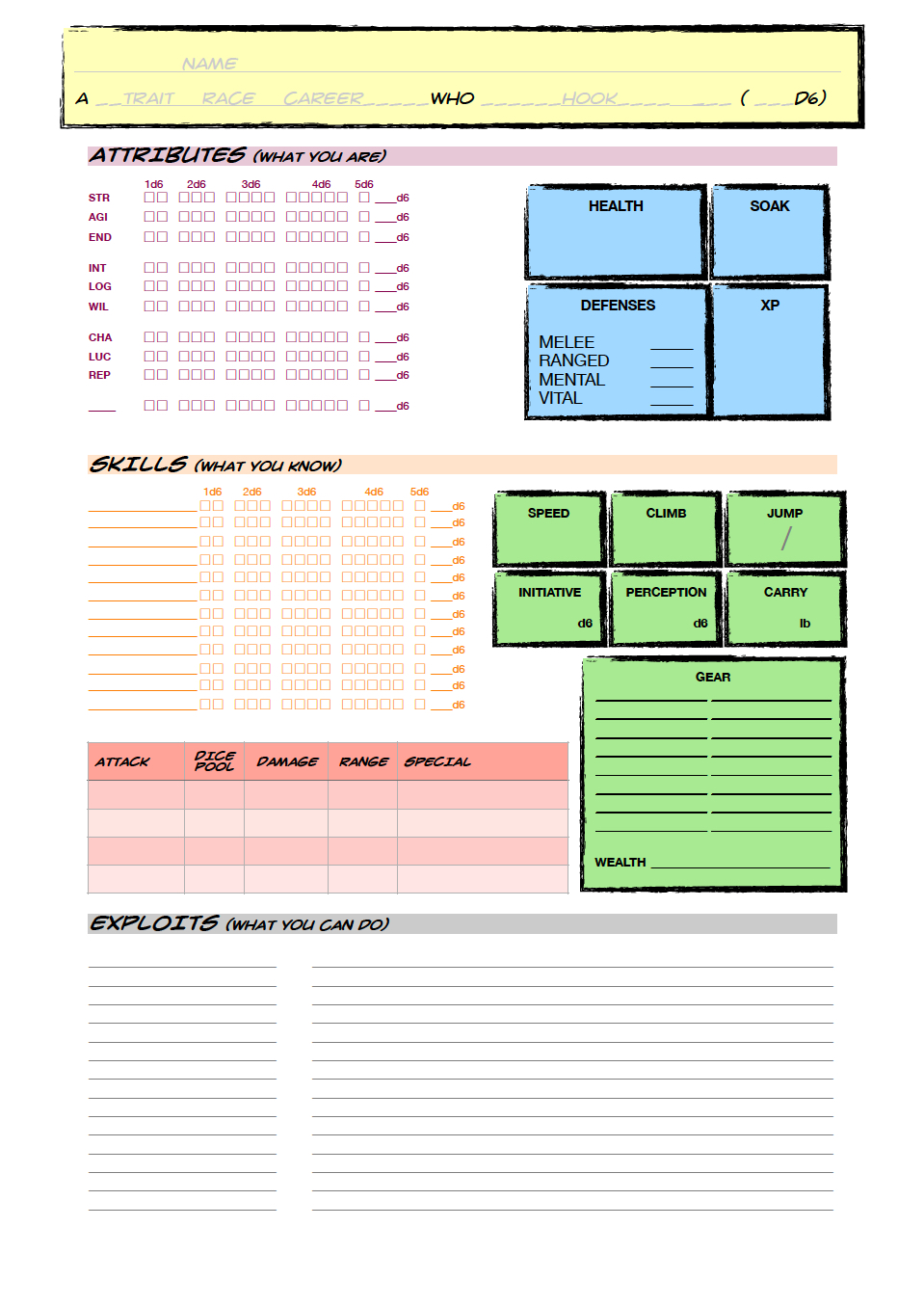 I was thinking about coming up with something myself, but I'm less of a graphic designer than you. I really like the functional but minimalist aesthetic, especially the bit that explicitly shows the points vs dice pool size. The one thing I would have tried to add is a short thing for the derived stats on what bits go into it, so you can see what changes when you add points.