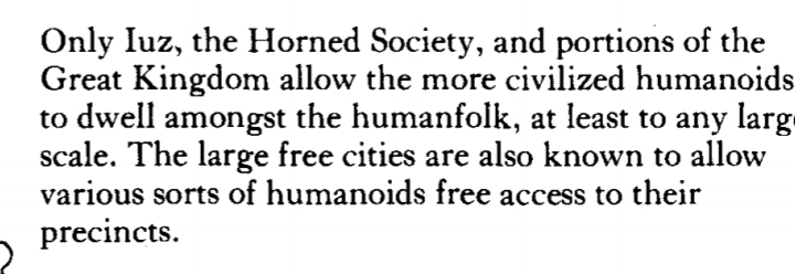 And then the entry for Greyhawk shows that Humanoids make up about 10% of the population, in addition to having free access to their precincts.