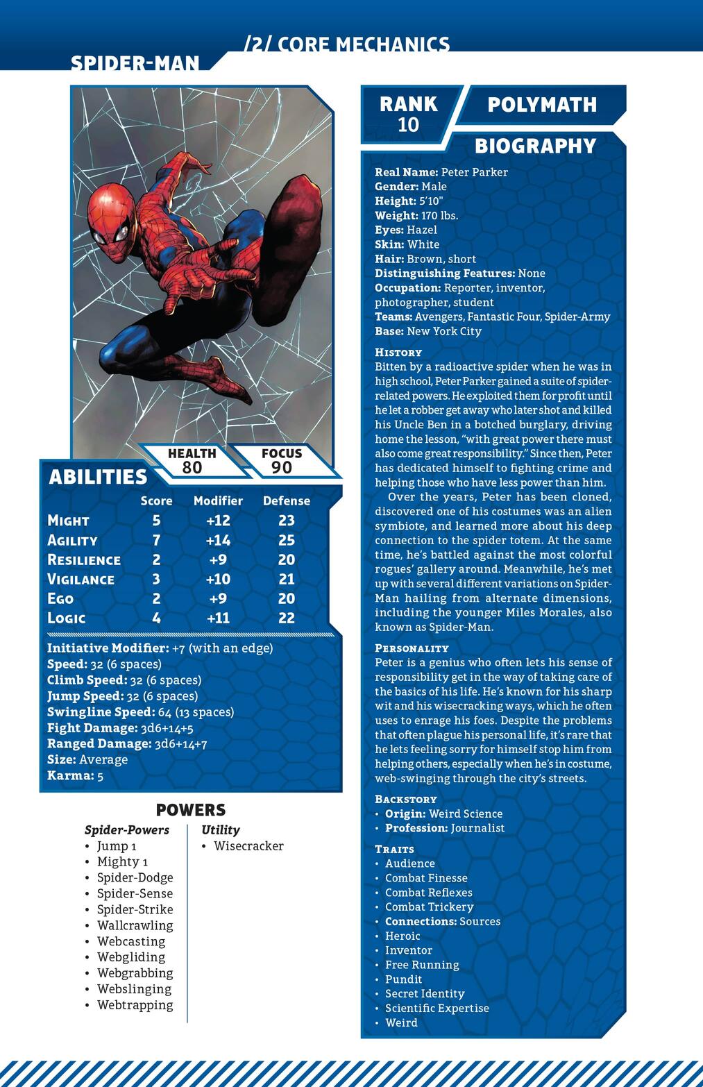 Here's a quick look at Spider-Man! For reference a normal human stat is between -4 and +4.