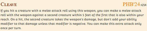 The rules are a bit ambiguous but seems to me that 2024 explicitly notes anything done as part of the attack action and so I would say the most defensible RAW reading is no since cleave doesn’t explicitly state it is part of the attack action.
