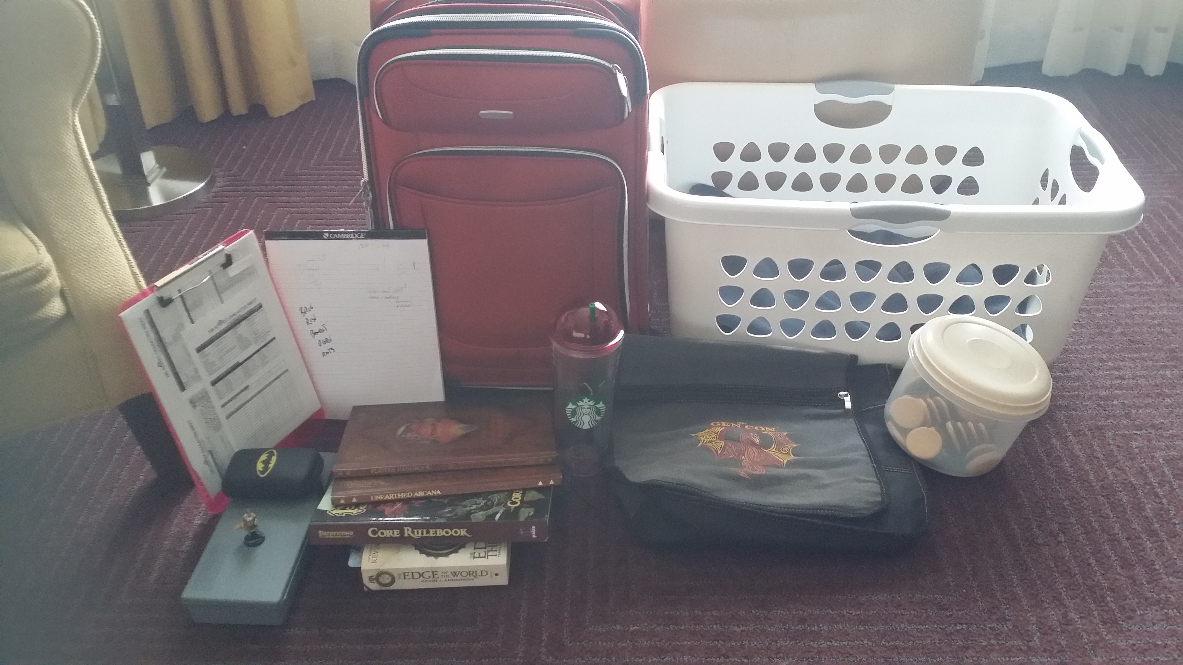 Con of the North (CotN) starts tomorrow and I'll be staying at the hotel and making a weekend of it. I don't go to gaming conventions other than CotN and this is the first time I'll be staying at the hotel (I live close and in the past would just drive over for a couple games). So, I don't have a con-prep routine or packing list.