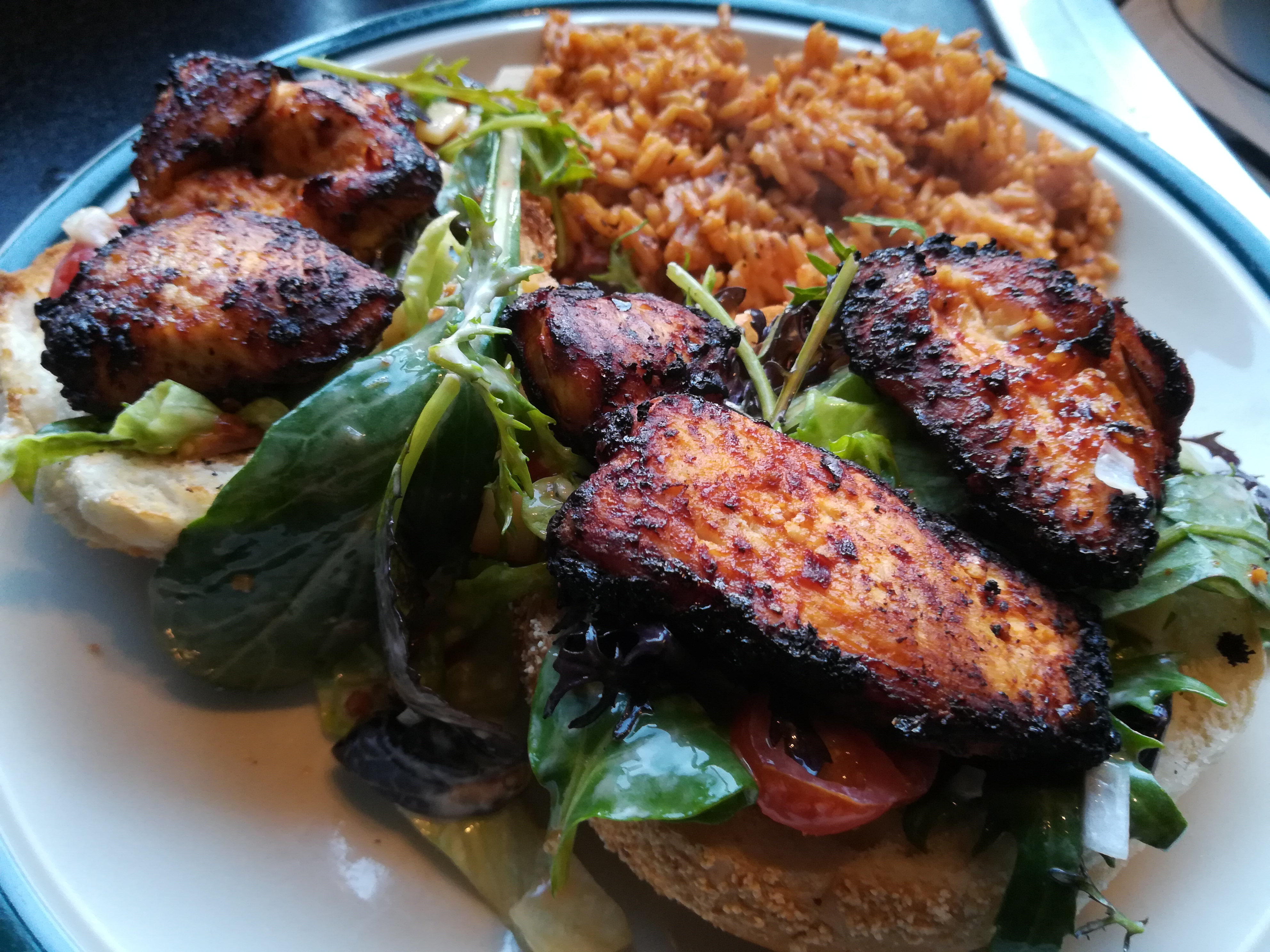 The sandwiches on day 1 were made with toasted ciabatta rolls. This was day 2, with toasted sourdough. The bread is smeared with garlic aioli (I ran out making mom’s) or mayo. There’s also a layer of creamy horseradish. There’s smoked Gruyere on the bottom, topped with beef in a brown gravy, grilled onions, and sautéed portobello mushrooms.
