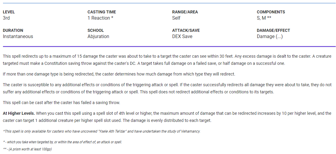 - Placing other monsters that can counterspell the PC's counterspell... I even created a homebrew spell where a PC caster can spend their reaction to redirect a capped amount of damage from an enemy spell back at other enemies (check out below and feel free to criticize lol).