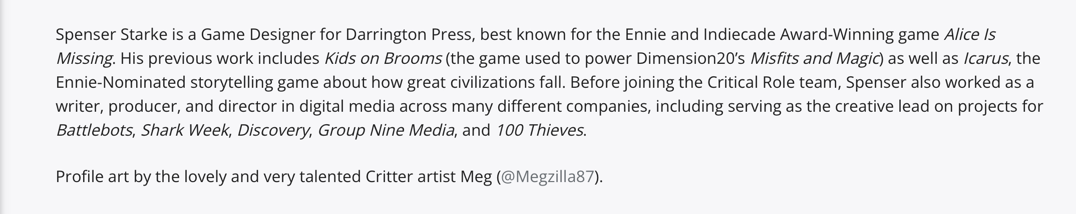 I have to agree with @Eilathen - as far this blurb on the Crit role doesn’t seem extensive. And game designer can be banded about to haphazardly nowadays with all the kickstarts first shot consider themselves game designers. Not everyone’s going to jump on the CR bandwagon so it’s okay to hear people not as impressed as others and not “takes sides” in a conversation.