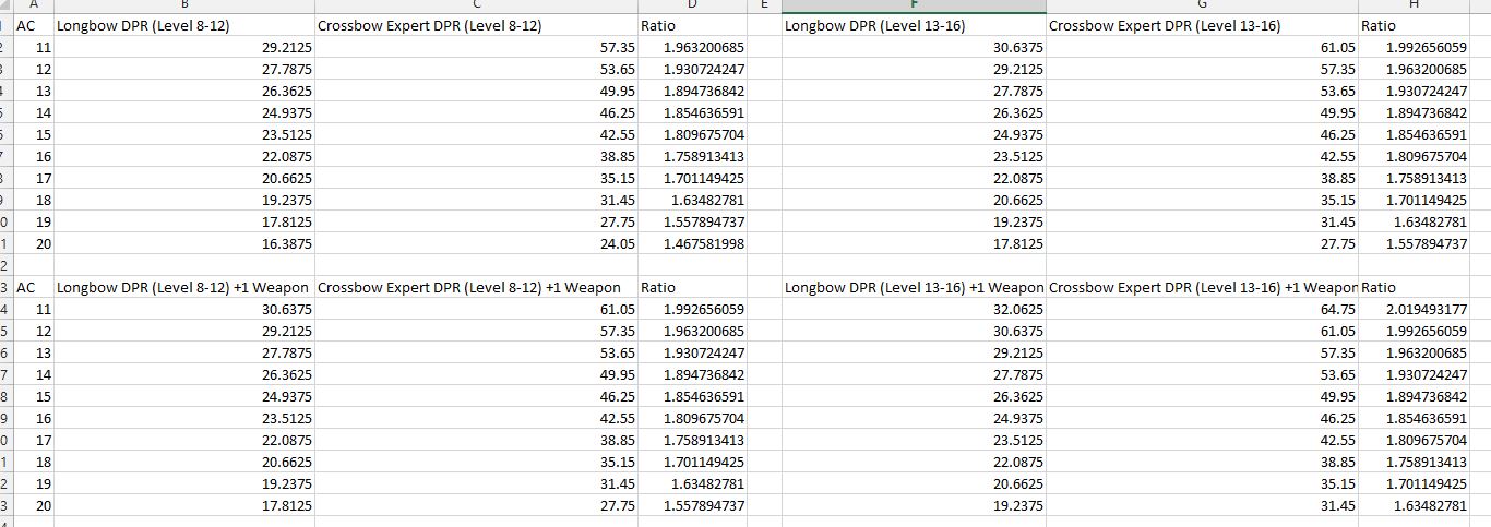 And, while I don't have roll logs (I don't play online, because my experieces with D&D online play are EXCEEDINGLY negative due to living up to bad D&D player stereotypes), my experiences with 30+ sessions with people using power attacks, even those who have a clue haven't done the math, and make suboptimal choices (giving up chance to hit 3-4 turns running). And, I should rerun them accounting for advantage - which at my table is far more rare than Bardic Inspiration... I've only had bless cast once, and I will admit that I've never DM'd a 5E party above 8th level. But, at least in the 4th-8th range, it's been consistently misused.