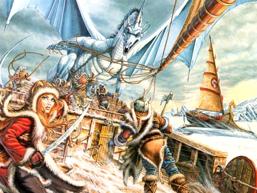 The group examining what look like magic items is the same as the group fighting in the dungeon, and those same characters appear in other pieces individually or as pairs. For example the dwarf in the caravan piece is the same as the one looking at magic items and fighting beasties.