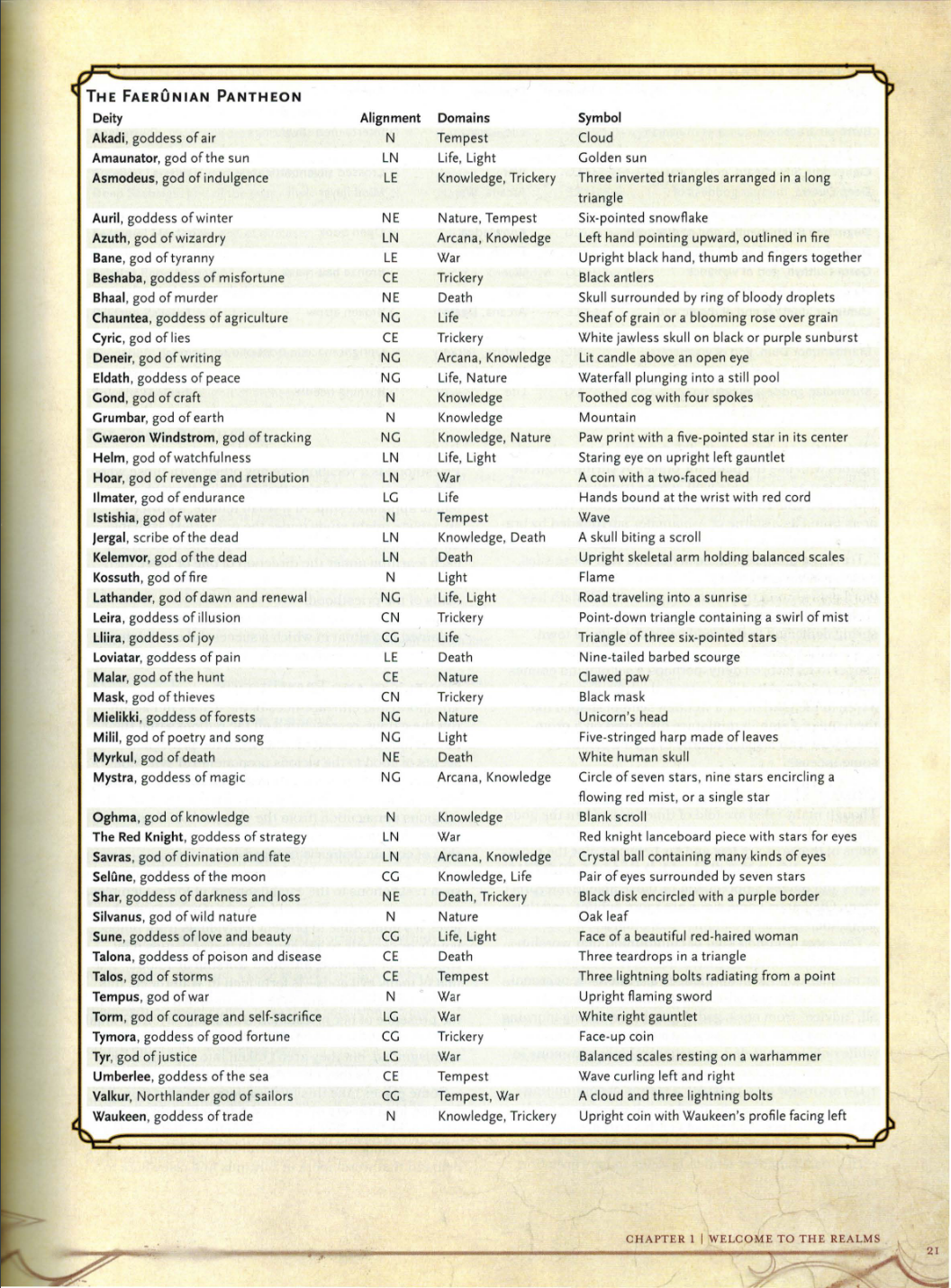 Oh, hey. Look. The Sword Coast Adventurer's Guide. I wonder if the Faerunian Deities have any kind of alignments...