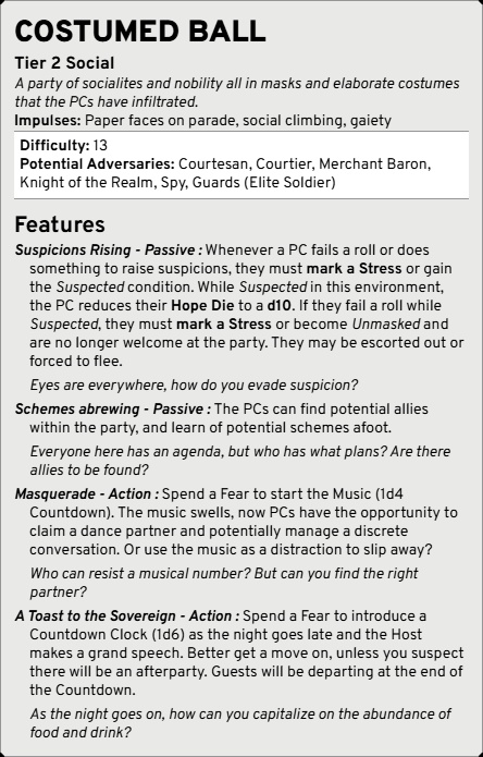 Troublesome presences: When resting, the GM rolls 2d12 on the umbral table and discards the higher. If there is a watch set, the roll is 3d12, keeping the middle die. Use the standard rest effect table.